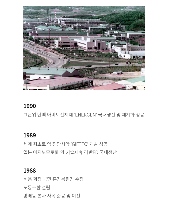 • 일본 아지노모토社 와 기술제휴 라반ED 국내생산