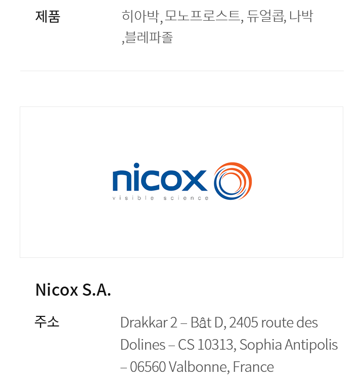 | 홈페이지 | https://www.nicox.com/ |