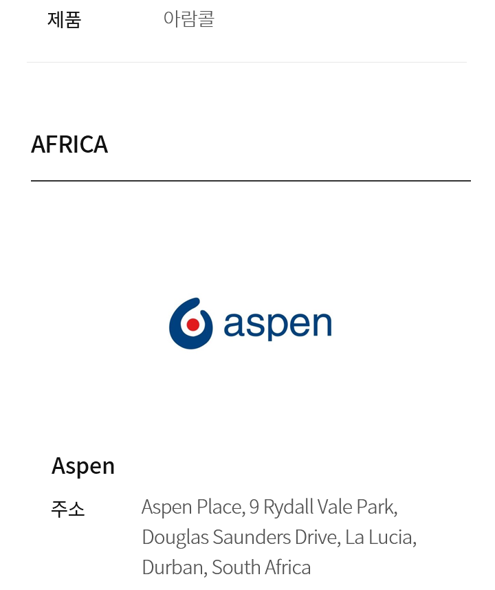 | 홈페이지 | https://www.aspenpharma.com/ |